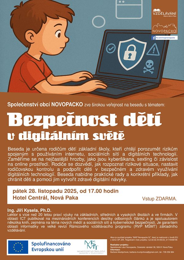 Přednáška 28.11.2025 od 17:00 hodin - Hotel Centrál - bezpečnost dětí v digitálním světě