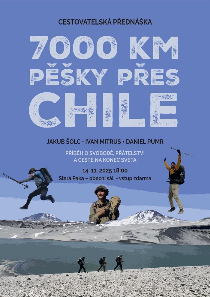 Přednáška 14.11.2025 - Ivan Mitrus: 7000 km pěšky přes Chile 14. listopadu 2025 Přednáška - Ivan Mitrus: 7000 km pěšky přes Chile