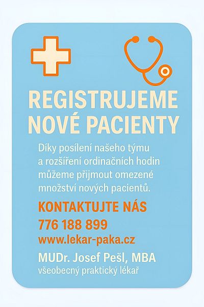 Registrace nových pacientů - MUDr. Josef Pešl, MBA