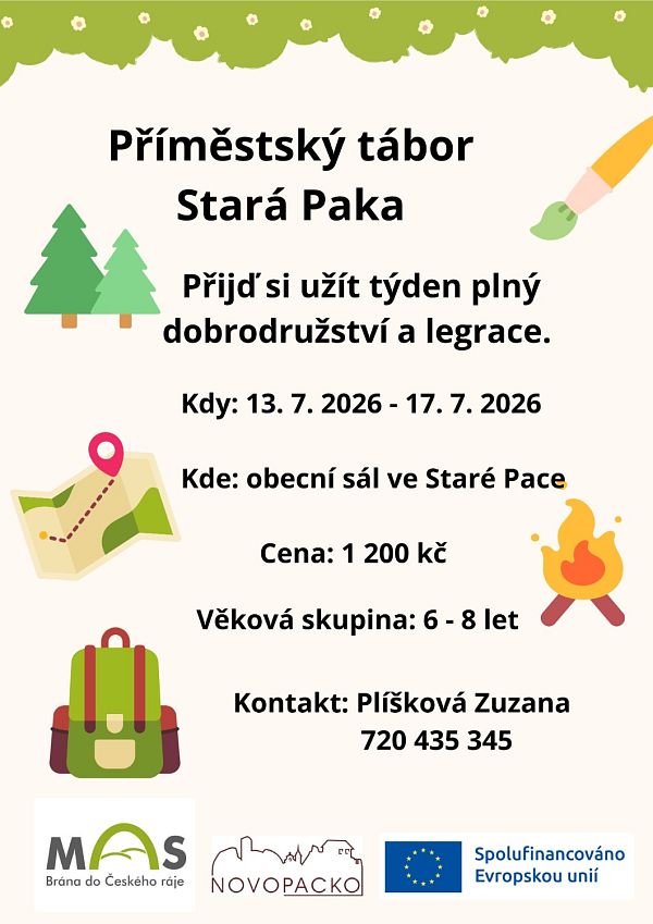 Příměstský tábor Stará Paka 13.7.-17.7.2026 - informace 23. března 2026 Příměstský tábor Stará Paka 20.7.-24.7.2026