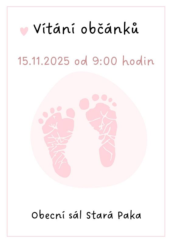 Vítání občánků 15.11.2025 od 9:00 hodin, Obecní sál 15. listopadu 2025 Vítání občánků 15.11.2025 od 9:00 hodin, Obecní sál