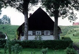 Přízemní roubení chalupa na zděném soklu s boční zděnou přístavbou. Lomenice členěná na tři vodorovné pásy s okénky. Střecha sedlová s polovalbou krytá nevhodným plechem. Chalupa umístěna pod tratí nedaleko viaduktu a křižovatky na Bělou.
